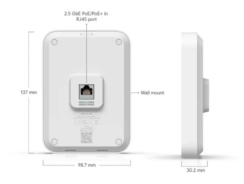 Acces Point Ubiquiti, UniFi pentru perete Wi-Fi 7 PoE 2.5 GbE U7-IW