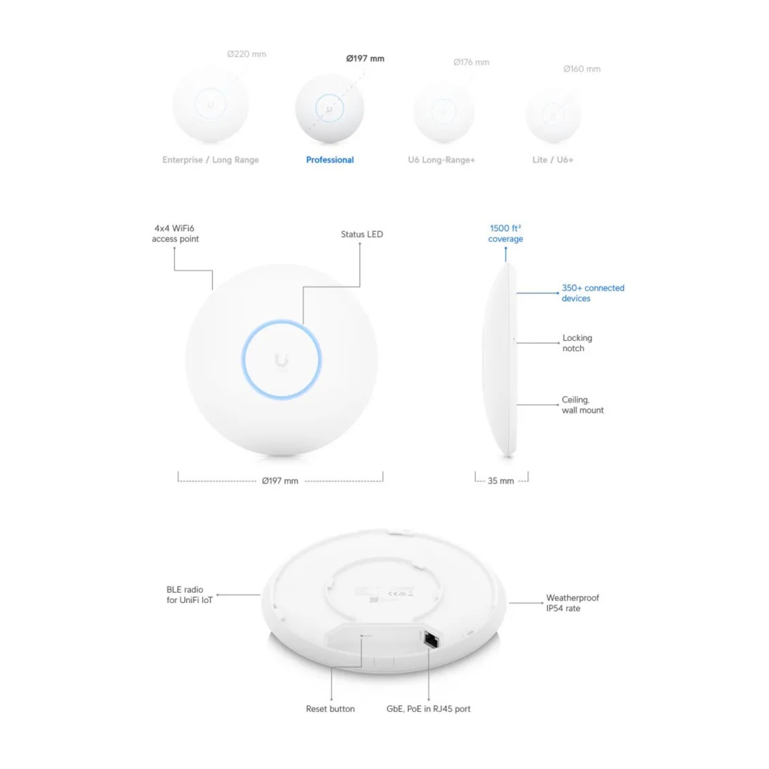 Access Point Ubiquiti UniFi, Wi-Fi 6 U6-PRO